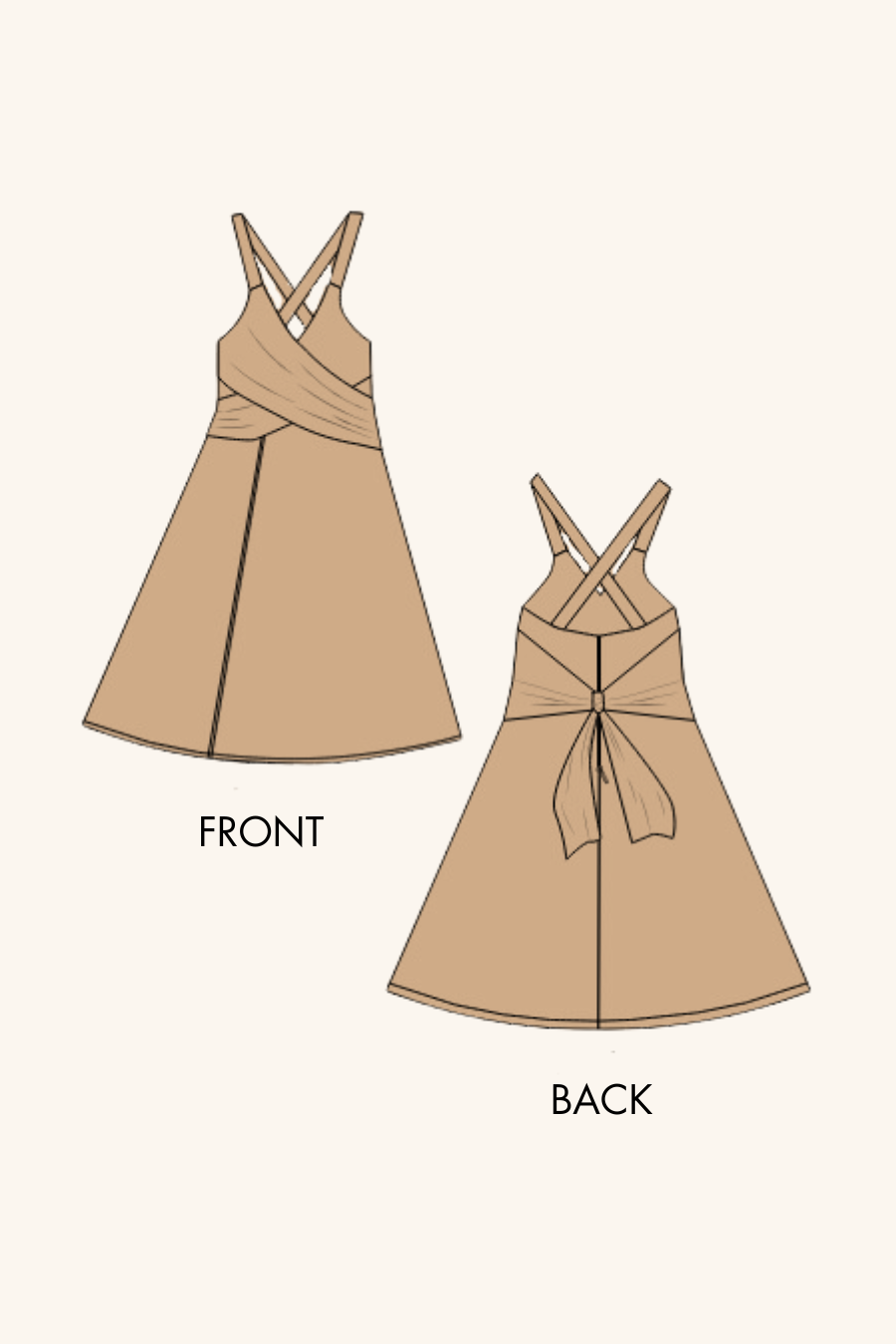 The dress features a fitted bodice that accentuates the waist, while the sweetheart neckline enhances the bustline. The cross-back straps provide both style and support, ensuring a secure fit. The flared skirt allows for ease of movement, and the wrap design offers a customizable fit.