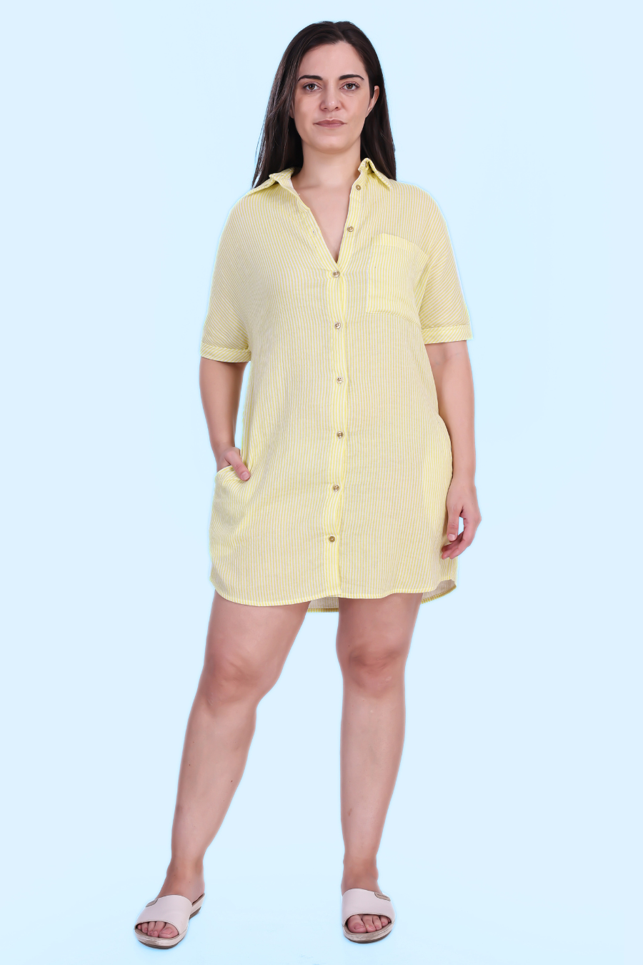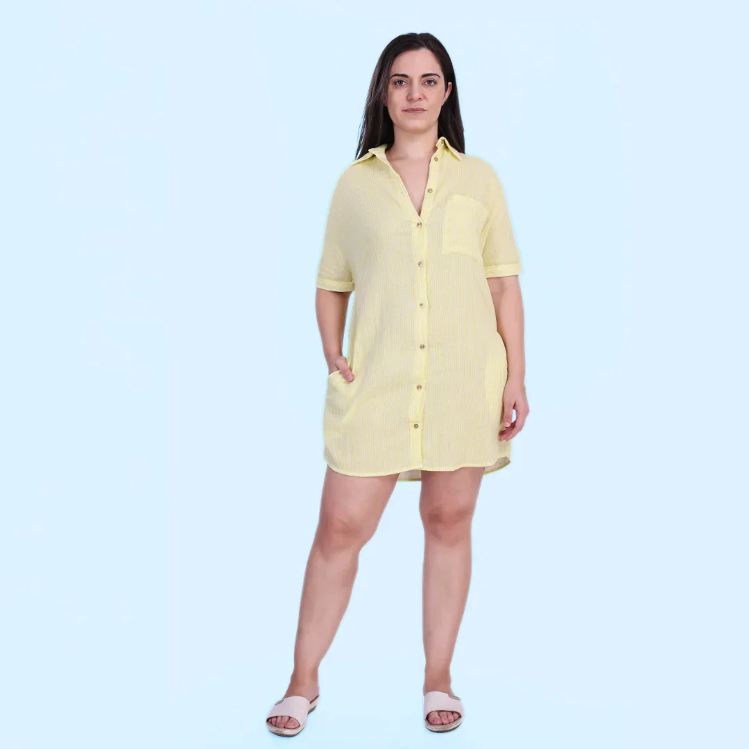 Our Shirt Dress infuses a classic design with a laid-back, airy feel, perfect for sunny days. Featuring a traditional collar, button-down front, and a chest pocket for functionality, this piece combines comfort with casual elegance.