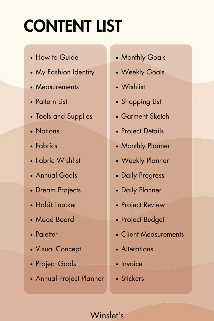 Plan, organize, and bring your sewing projects to life with the 50+ pages of Winslet's Sewing Planner.