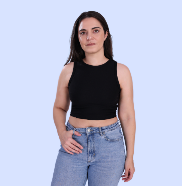 The classic tank top - cropped, fitted vest top with a narrow trim around the neckline and armholes. The Breeze Crop Tank Top features a classic crew neck and a flattering midriff crop, designed to fit seamlessly into any ensemble